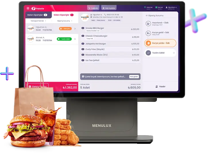 Menulux paket servis yazılımı sadece restoranlar için değil, kafeler, fast food zincirleri, burgerciler ve take-away hizmeti sunan tüm işletmeler için idealdir.